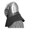 Wolf ribs with fabric aventail is a lightweight version of the popular European helmet. Using fabric instead of chainmail allows you to reduce the weight of the helmet by about 1 kg. Under the fabric are hidden plates of hardened steel or titanium, which will reliably protect your neck and shoulders from impacts. The color of the fabric can be different, it is also possible to apply individual patterns and embroidery